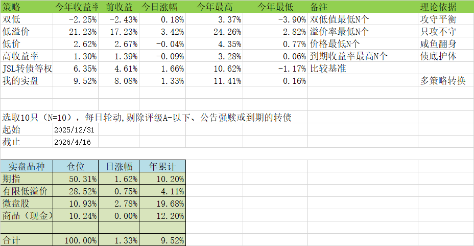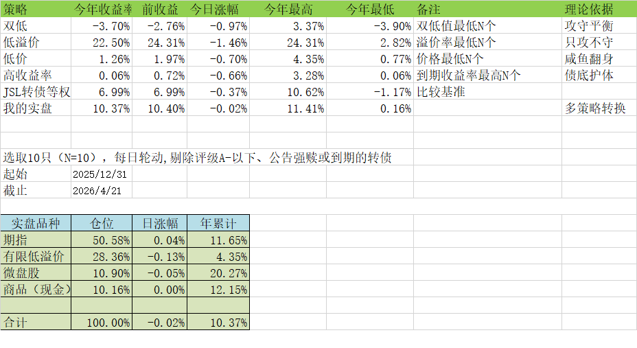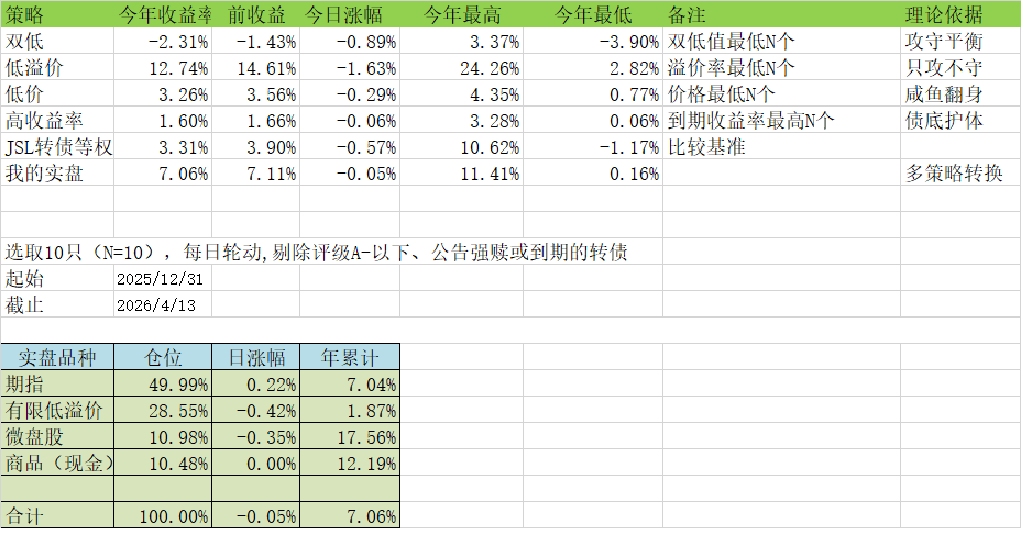 今天以上几种低溢价策略都是负收益,为何你的是正收益?