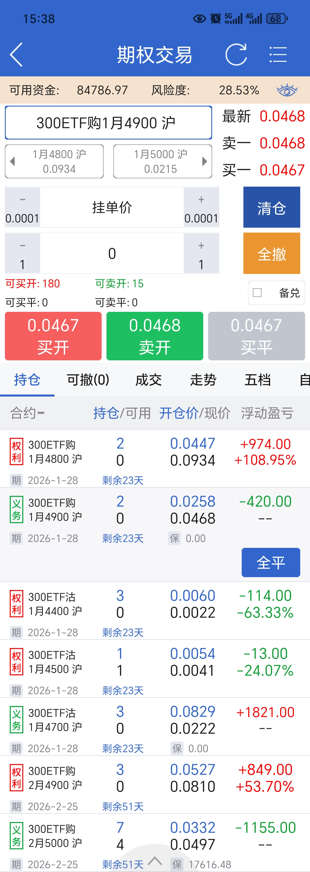 今日操作,当月卖出的认购向上向后移仓