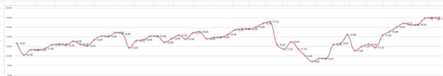 看了下里面有很多跌停的,还是用定额法好,未来就使用这个方式定投。