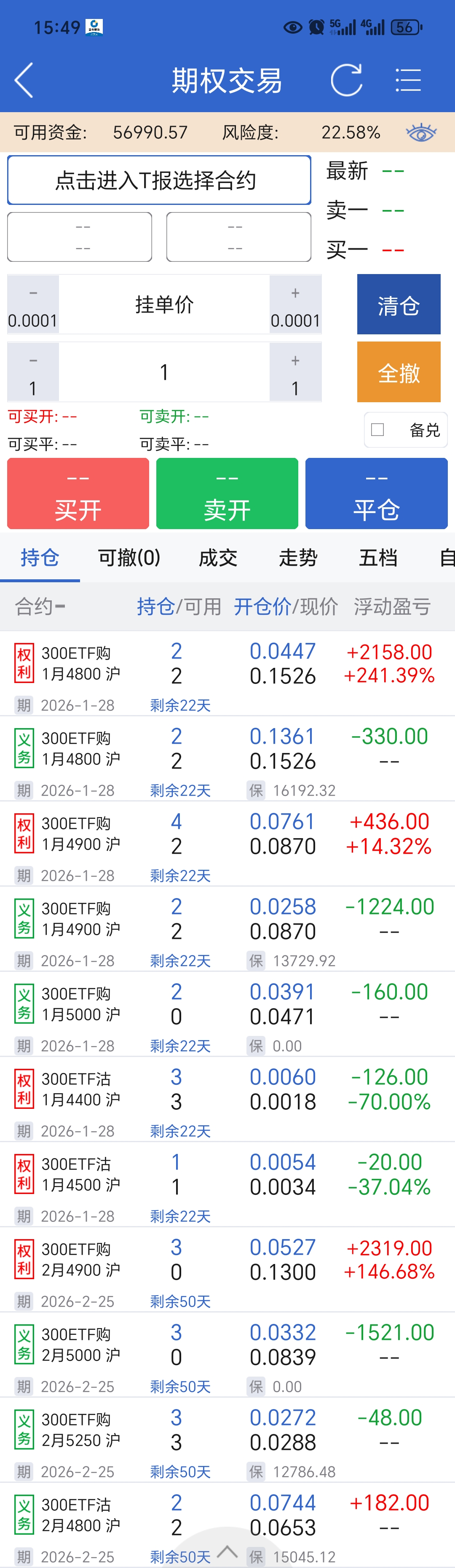 今日操作,当月的牛叉已变成平值,向上移仓止盈,