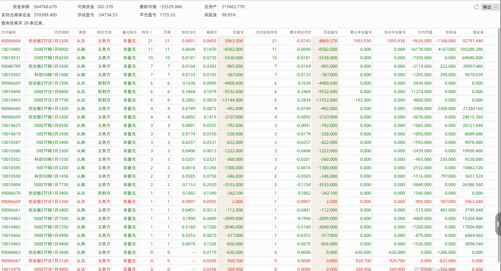 不过期权近期的情况有点惨,12月份收益创了新高,结果进入1月份,大盘连续两天上涨,期权这边因为布局了大量的认购卖方仓位,还重仓了500ETF相关合约,直接来了个大空头行情,两天回撤超9%,这是从去年8月做期权以来最大的一次回撤,把12月赚的钱全吐回去了。