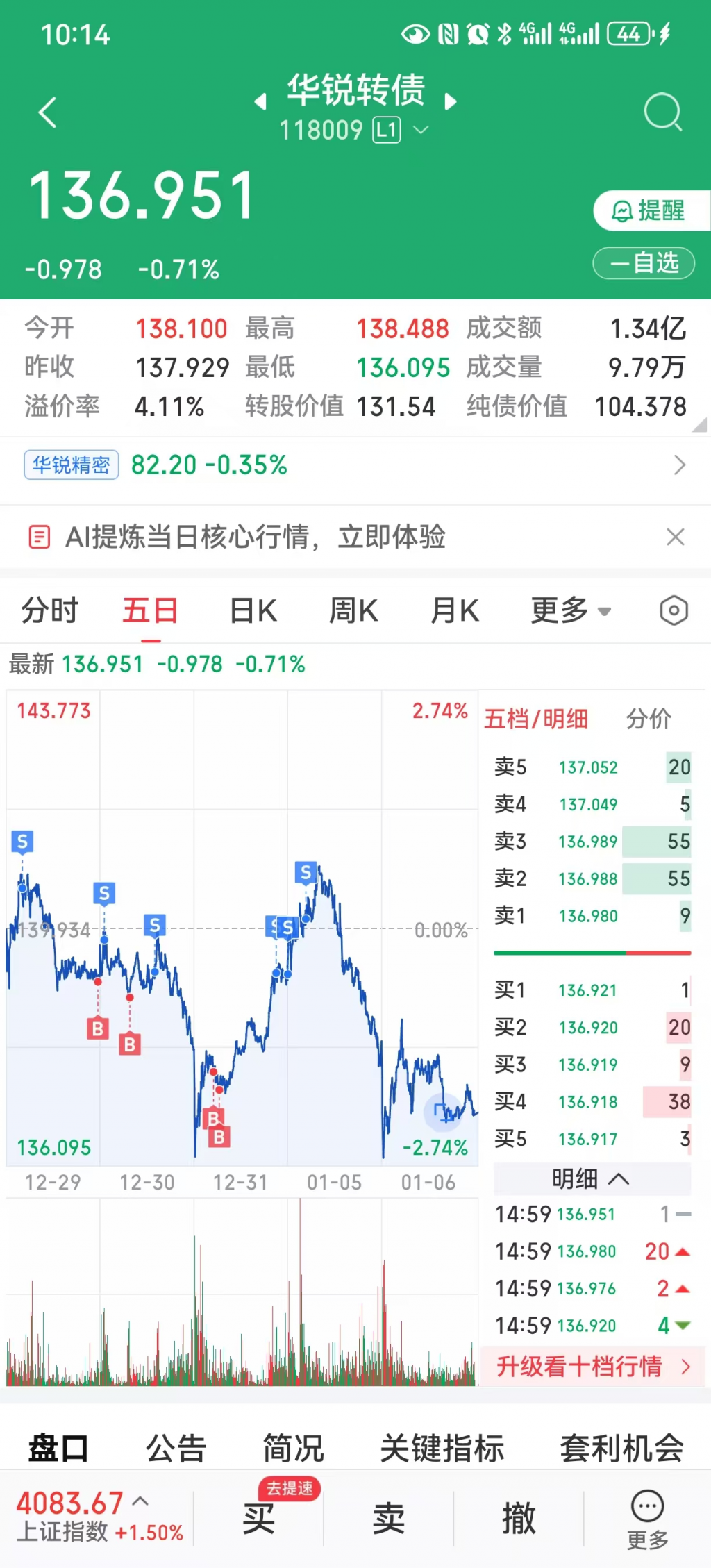 很多人高估了自己做t能力,溢价偏高和价格离130远的时候还是尽量不碰耐心等机会。