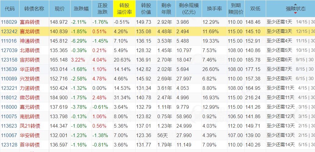强赎回的可转债等于被剥夺了溢价的权利,后期限定几周内必须转股,不然公司只给100元+几毛利息,所以一但公司宣布强赎回,大部分可转债都会股债双杀!