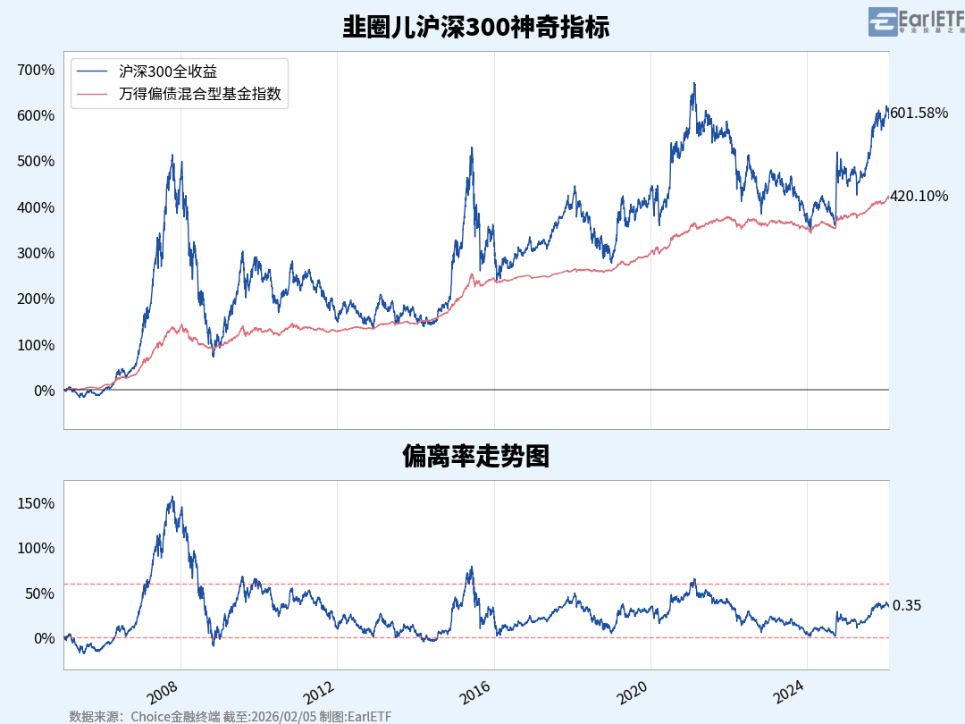 详细解释 & 更多图表 请参考数据来源:EarlETF图表周刊2026-02-08中证A股全收益指数的五年之锚(-15% & 15%) 阅读全文我也用earlETF的数据再结合一些其他指标
