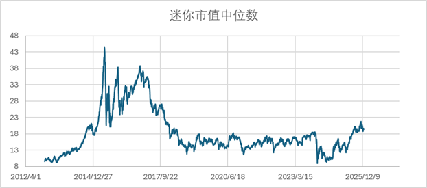 从2013~2025年这13年的统计数据来看,迷你市值的水位还有一倍的空间,低市净率的水位还有接近三倍的空间。