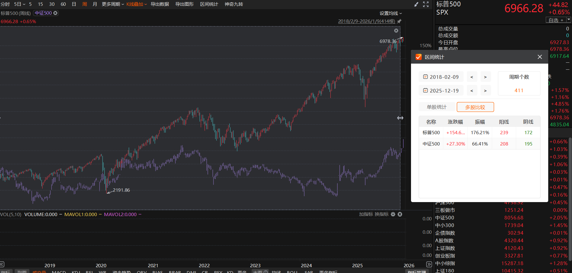 如果你2018年2月8日同时买入标普500指数,和中证500指数