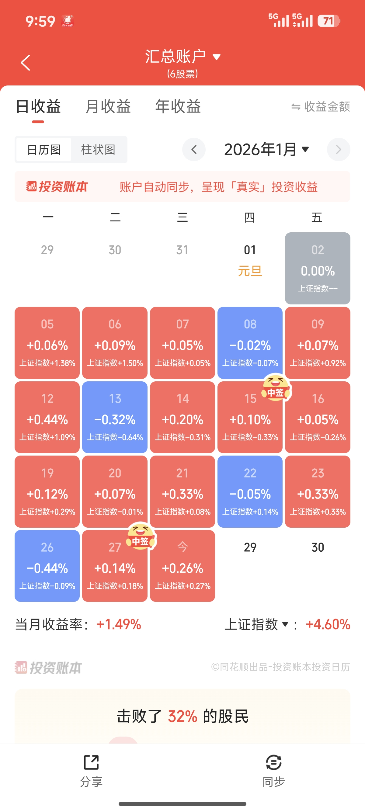 你这收益有点惨烈,我以为我节后赚五六个点已经算很惨的了