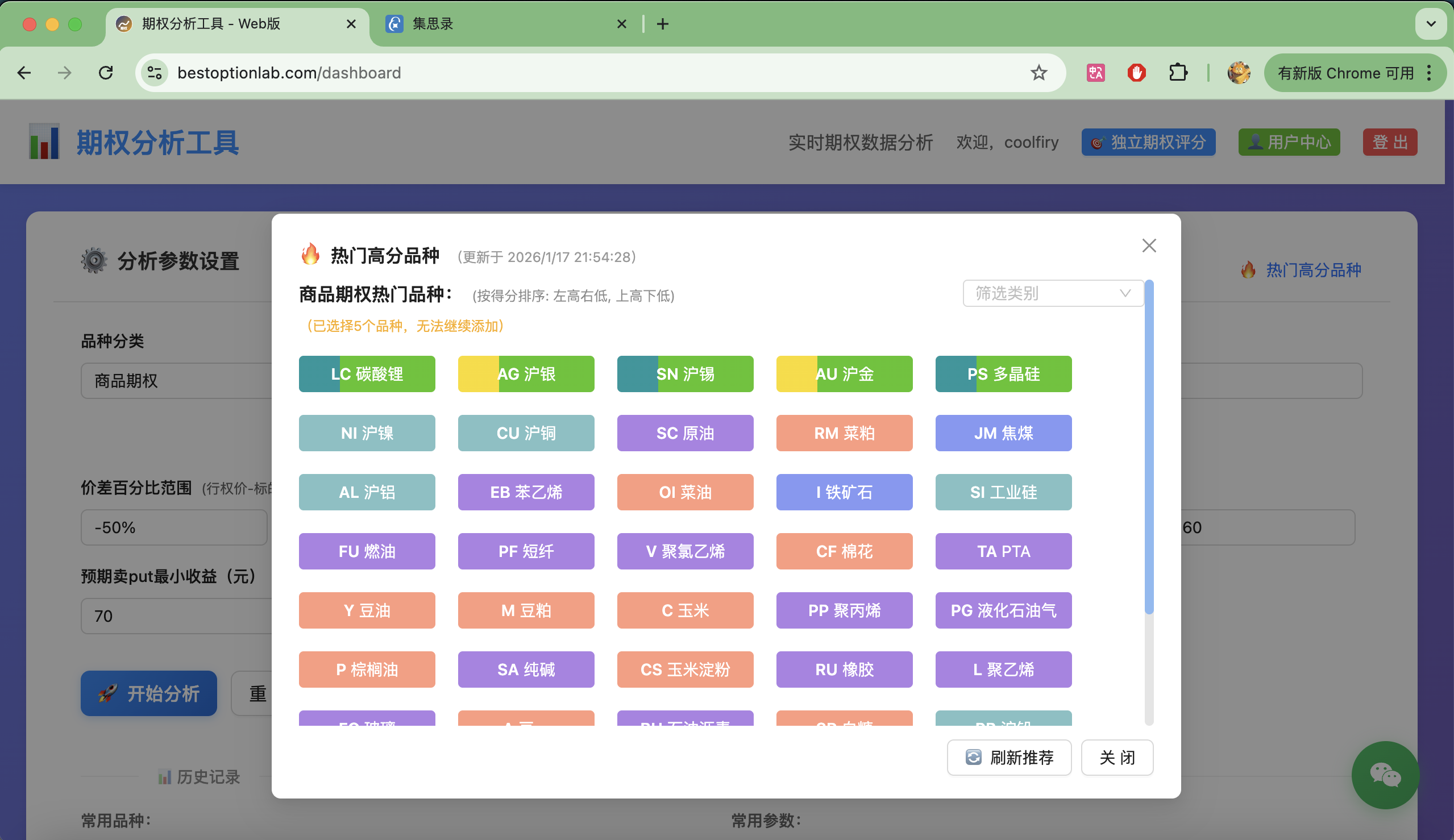 不太好用,默认参数搜,结果为0不如直接按日把默认的品种结果列出来,需要实时的调参的再搜不迟这个功能正在开发,会讲当日比较容易搜索出品种的列出来。 结果是0那就证明当前品种的期权卖都不划算。