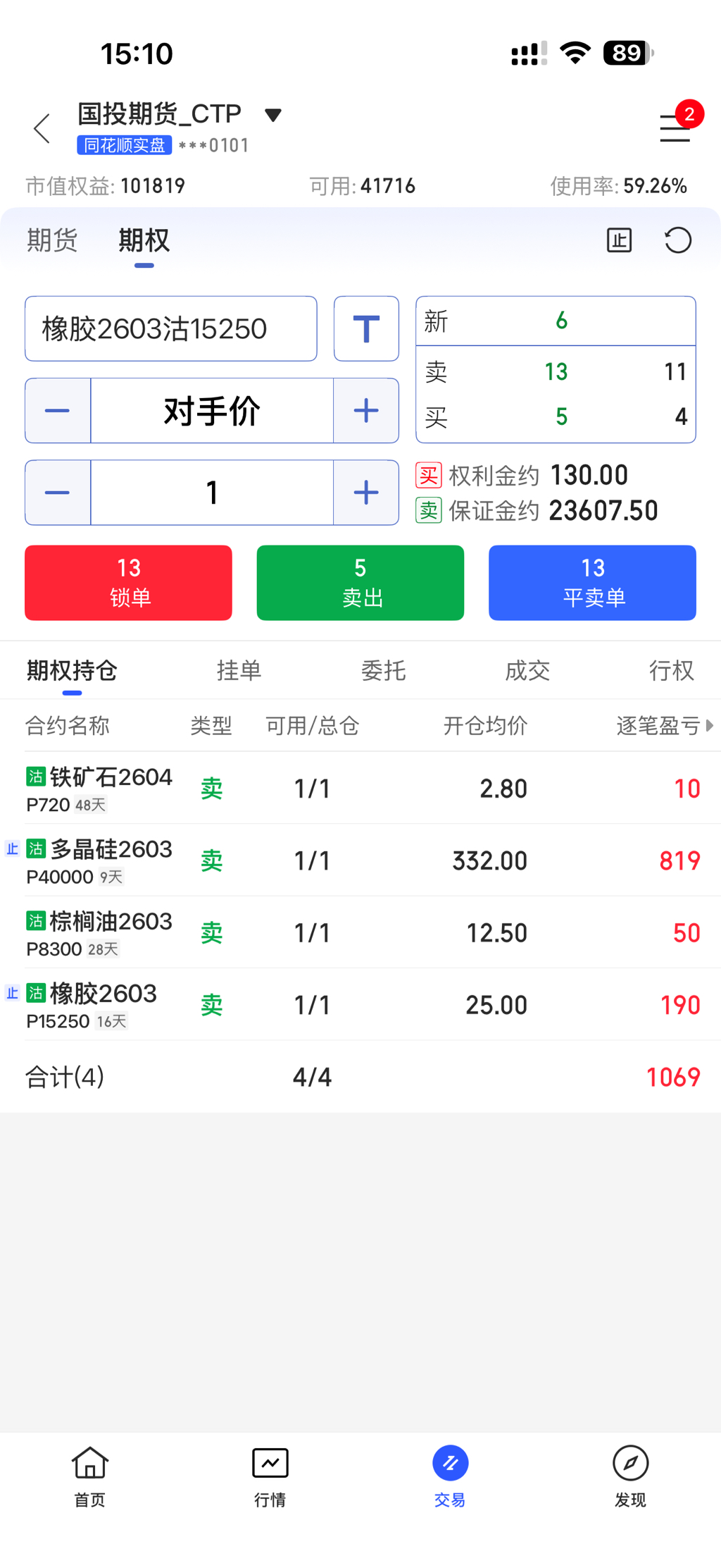 今天实盘:没有任何操作,盈利未知,是否连续10天盈利这个还真不好说,因为APP显示的利润因为剩下的时间价值太少了,所以是不准确的了。 实际上应该是赚钱的,因为我看了几个合约的情况今天还都是上涨的。 今天在研究期货所以没有来的及卖出期权,还有一个原因是今天好像很多品种都在涨,卖也不划算。 等明天卖一卖。