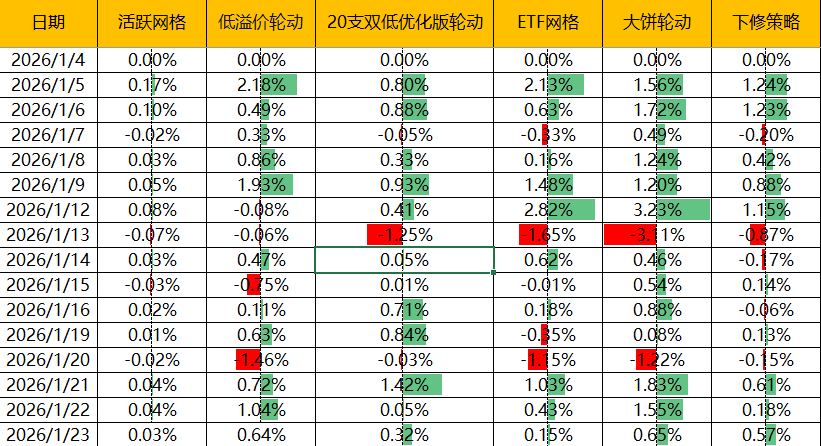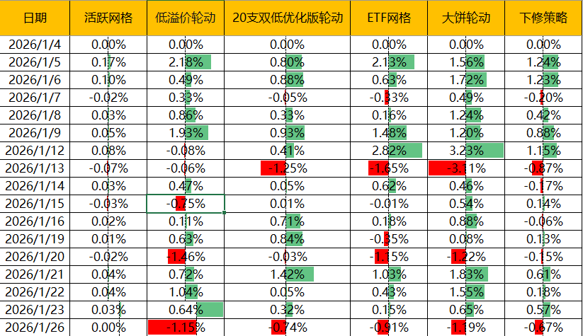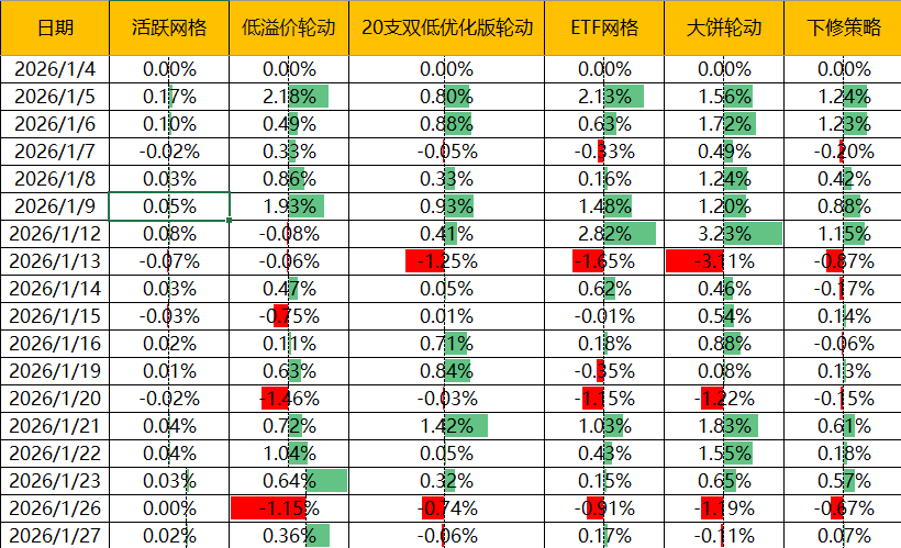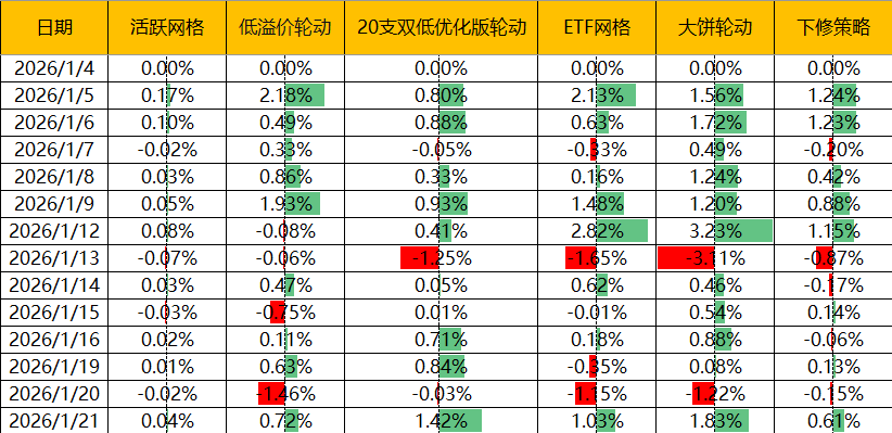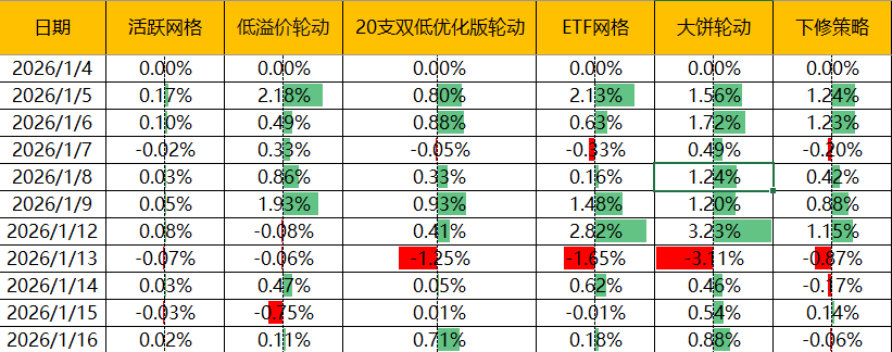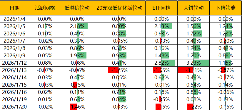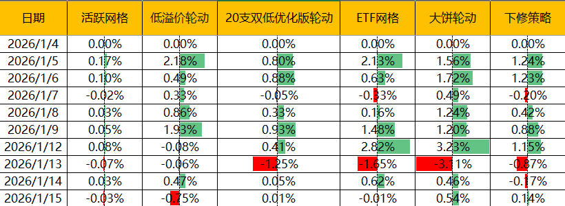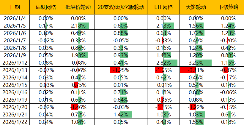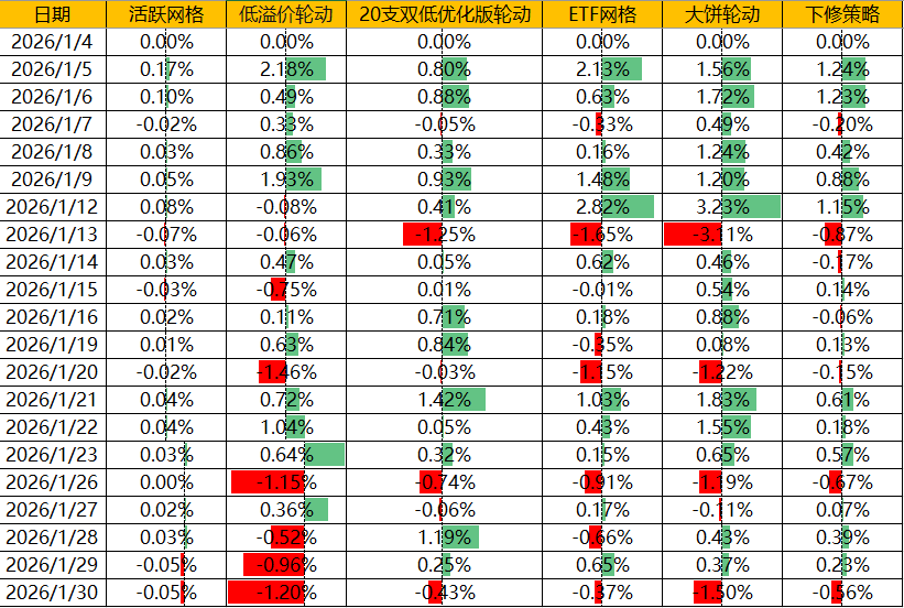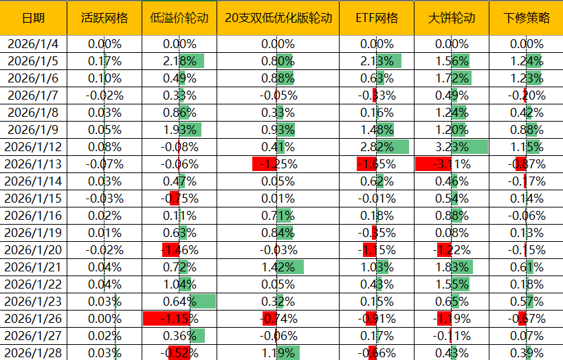 ①如果是单独账户,记录净值相对简单,因为可以默认软件显示的日涨跌,就是当日的策略涨跌幅度,比如涨1%,净值就从1变成1.01;我有2个账户是属于上面的情况,分别是活跃网格和低溢价轮动账户;