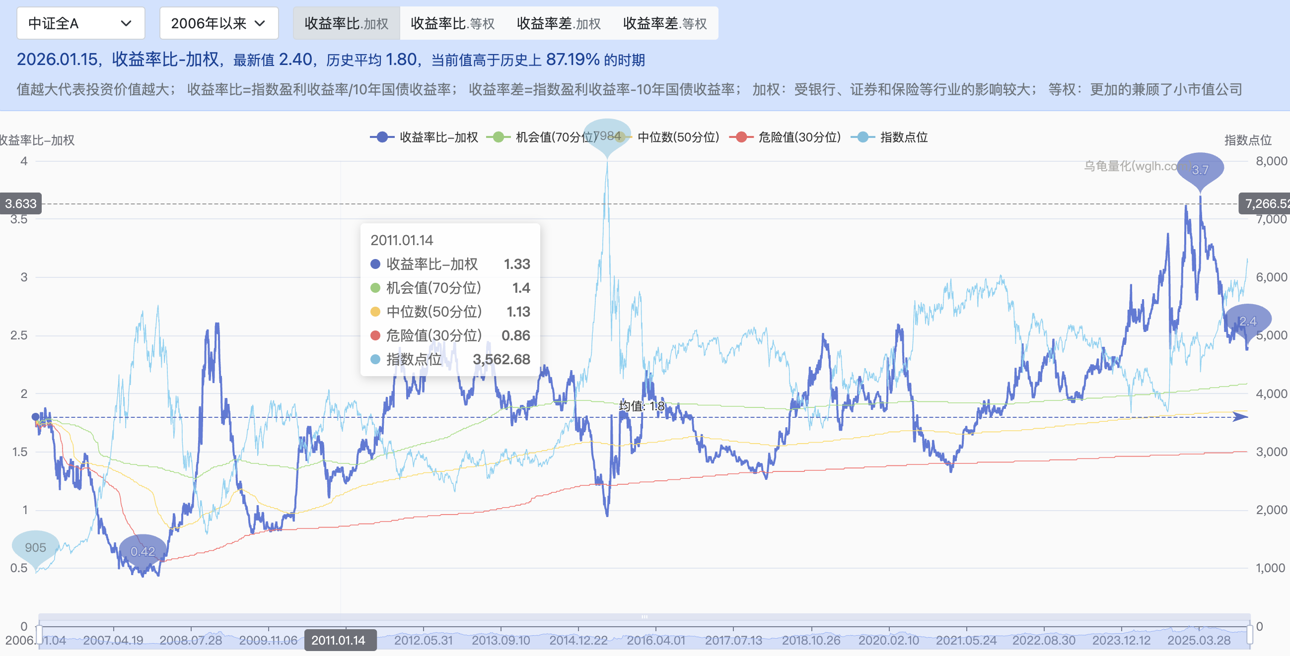比值计算:采用较高的总市值数据(35.6万亿)进行计算,以反映市场顶峰时的热度。