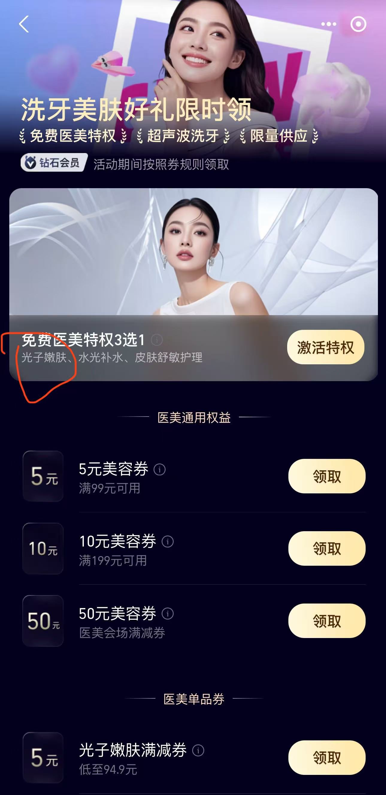 看见支付宝送了个光子嫩肤