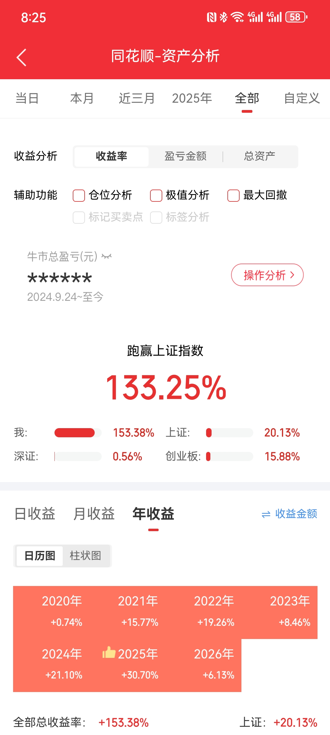 今年是我股票投资的第7年,从2020年至今,每一年都取得了正收益,希望可以这样一直保持下去,让雪球在潮湿的雪道越滚越大。