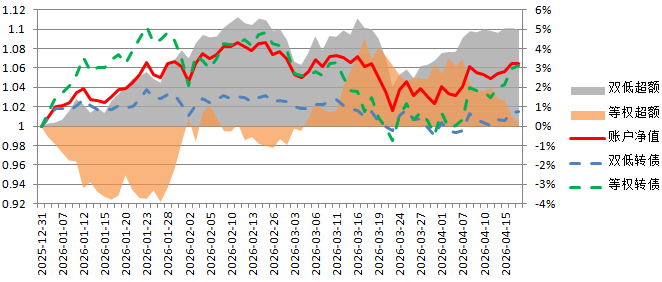 2026年,账户累计涨幅6.99%,显著跑赢双低转债指数,并在本周反超等权转债指数。