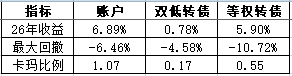 2026年,账户累计涨幅7.39%,显著跑赢双低转债指数(2.76%),并在本周反超等权转债指数(6.94%)。同时有效控制最大回撤,卡玛比例接近4倍。