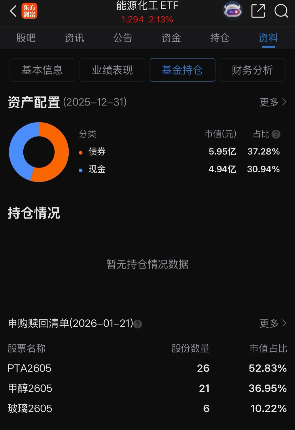 那159981能源化工etf可以看?这个是跟化工品价格相关的吧这个159981看它持仓没有化工股啊,全是债券