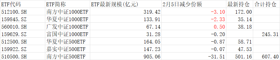 可以看到最近一周中证1000卖出了600亿,而中证500卖出了不到300亿;更为夸张的是昨天1月21日这天中证1000卖出了300亿,而中证500份额竟然还是增加的,我非常看不懂。