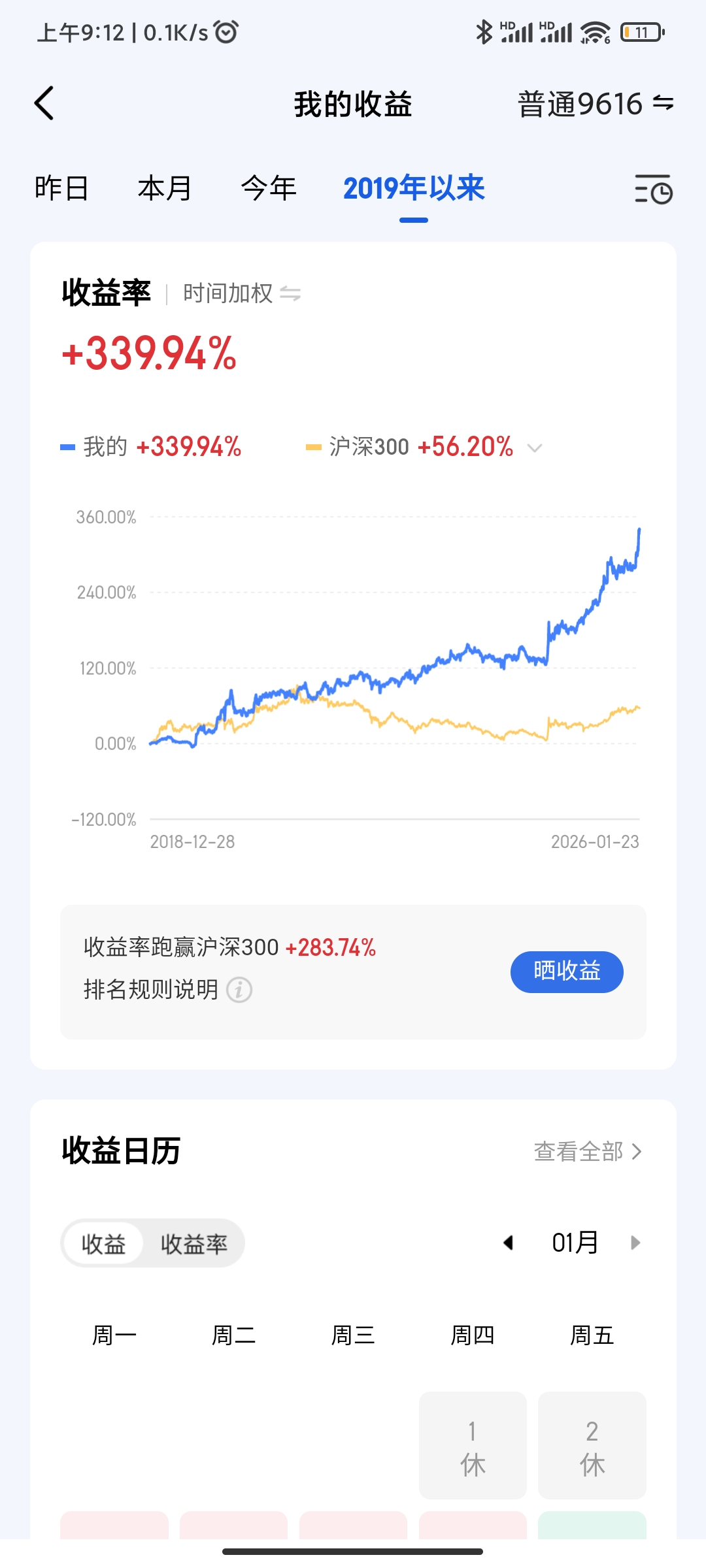 一年收益是: