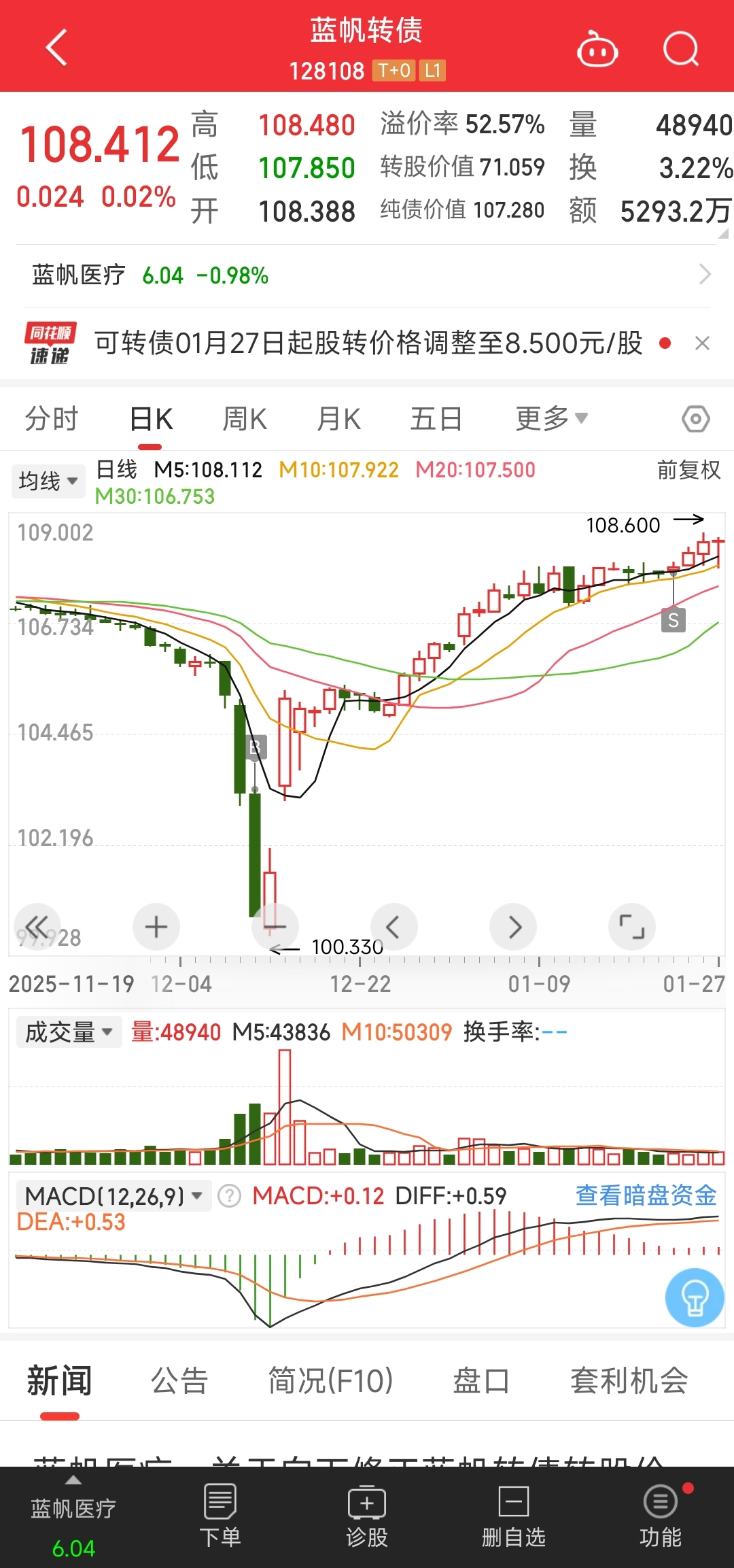 上个月跌到 100 多不买,不发帖,现在 108 以上才发现,是不是有点太滞后了