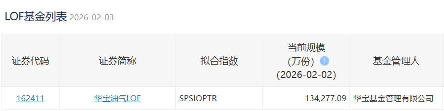 2026年2月2日,华宝油气LOF场内规模134,277.09万份,新增16,002.98万份,相当于20.68万辆拖拉机申购。
