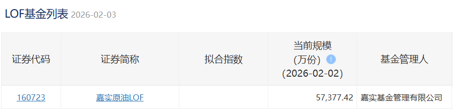 2026年2月2日,嘉实原油LOF场内规模57,377.42万份,新增9,651.43万份,相当于23.31万辆拖拉机申购。