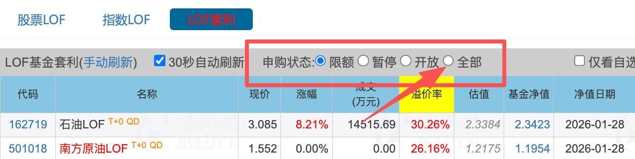 默认显示“限额”,套利的可能性大,发现哪个没有可以使用“全部”查看。