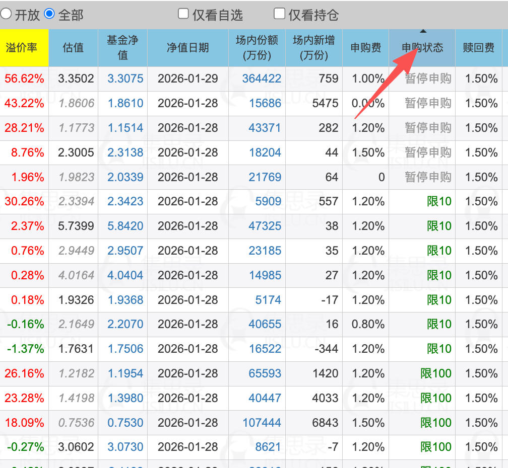 限额就是“申购状态”的一种,申购状态点击表头可排序