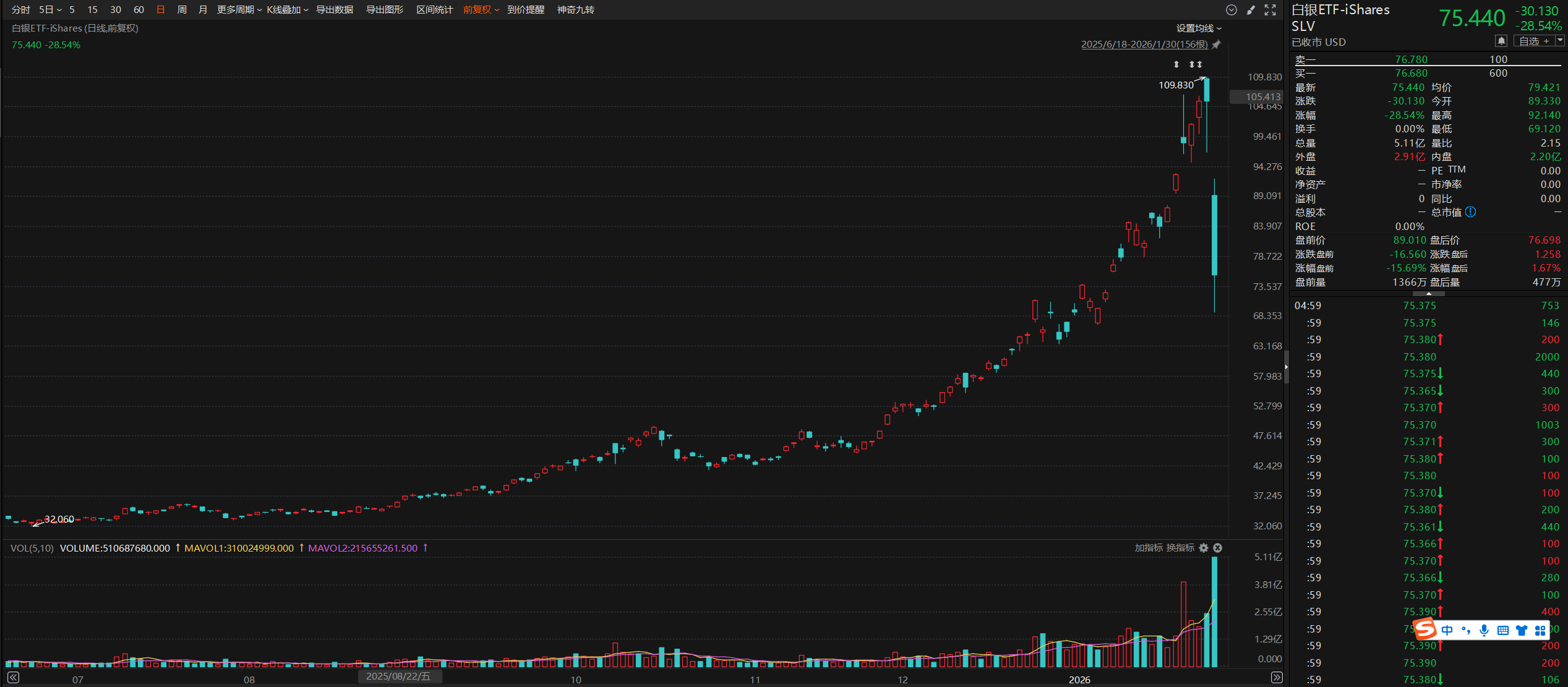 我前晚查看境外白银账户时,账户里最高的时候有11万美金,可今天一觉醒来,仅剩下3万4千美金。被强平了!原来在一月份的金融市场中,最引人瞩目的并非商业航天,也不是AI芯片,而是白银期货那令人瞠目结舌的行情。前天晚上,美国白银期货COMEX白银价格一路飙升至最高点121.785美元每盎司,市场一片沸腾,投资者们沉浸在牛市的狂欢之中。然而,风云突变,到了今天凌晨,最低跌至74美元每盎司,累计从高点暴跌...曾经期货爆仓过的路过……