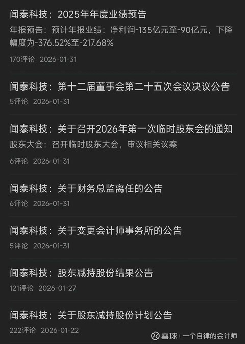 业绩巨亏+股东减持+变更财务总监+变更会计师事务所。