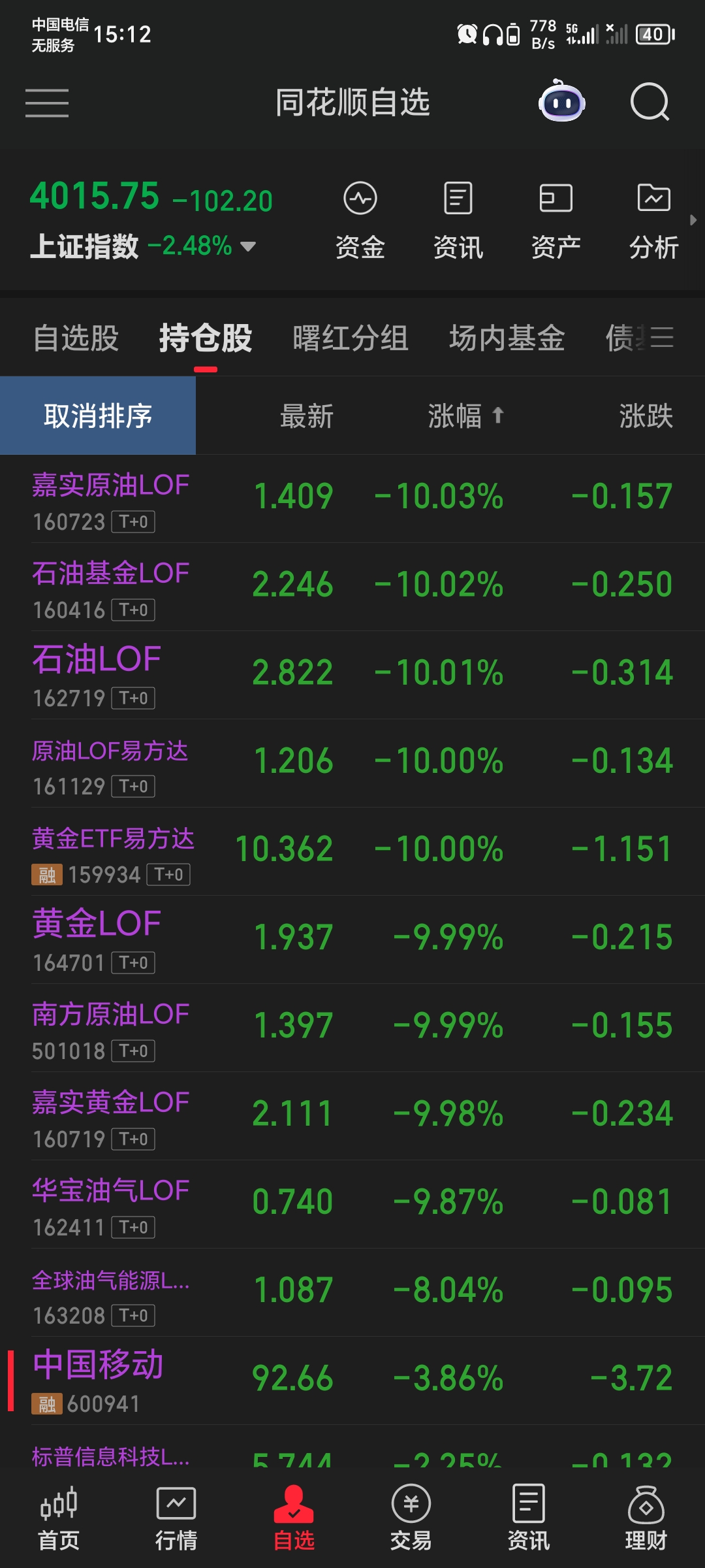幸运的是,之前把盛屯出清了,总仓位仅剩7%,然后把去年盈利的部分已悉数取出,买了个浦东的老破大,所以现在的满仓也只有之前的三分之一仓位了。不幸的是,剩下的资金在上周从轻仓快速增至了满仓,加仓的中国中铁和中国中冶跌幅还不小,这回套踏实了。
