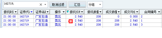 今日广发石油LOF 我的委托单营业部编号分别是1 2 3,结果1和3成交,2号单至今等待成交