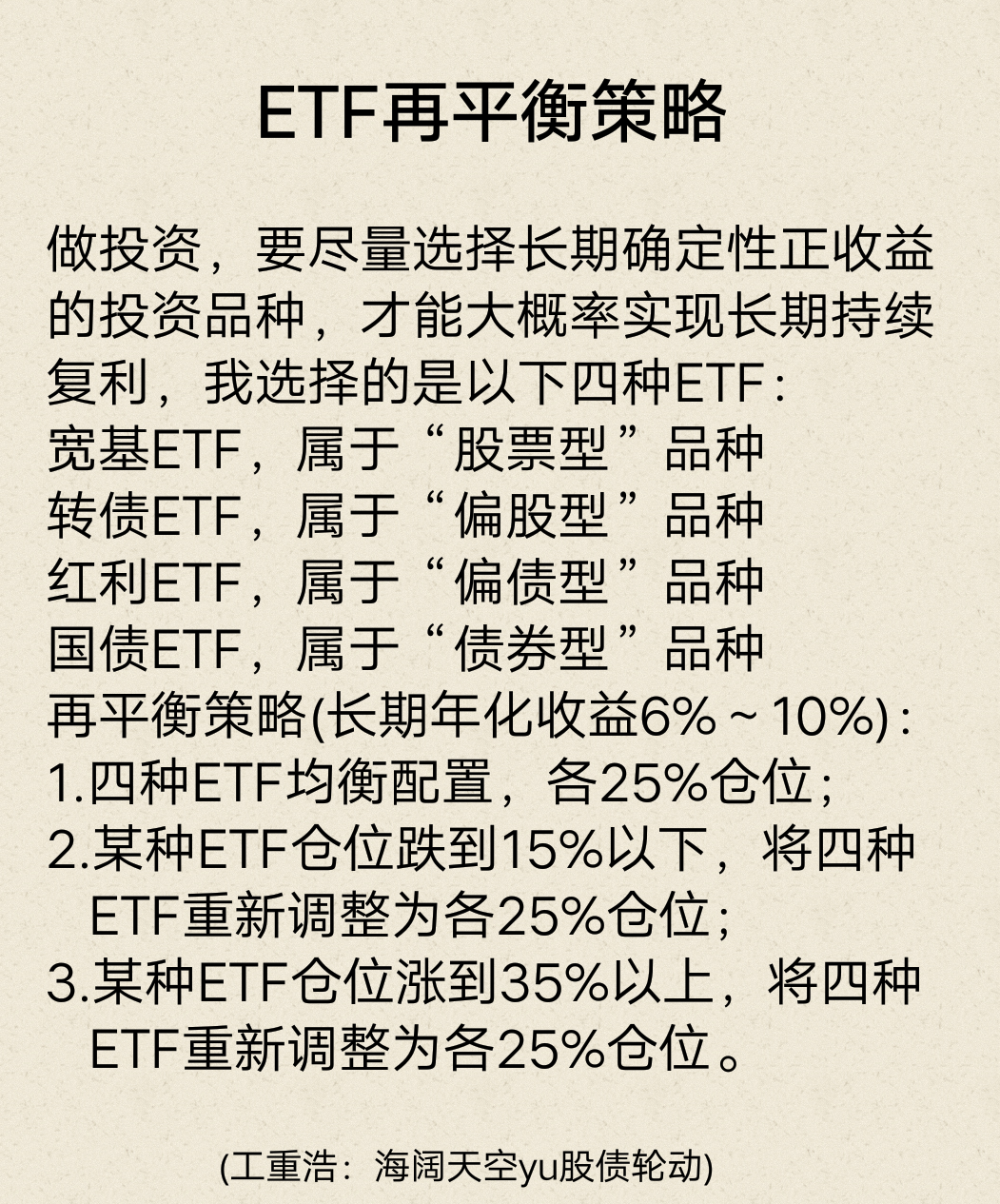 希望这些信息能帮助你做出更明智的决策。如果想了解关于再平衡具体操作或不同ETF选择的更多细节,我们可以继续探讨。