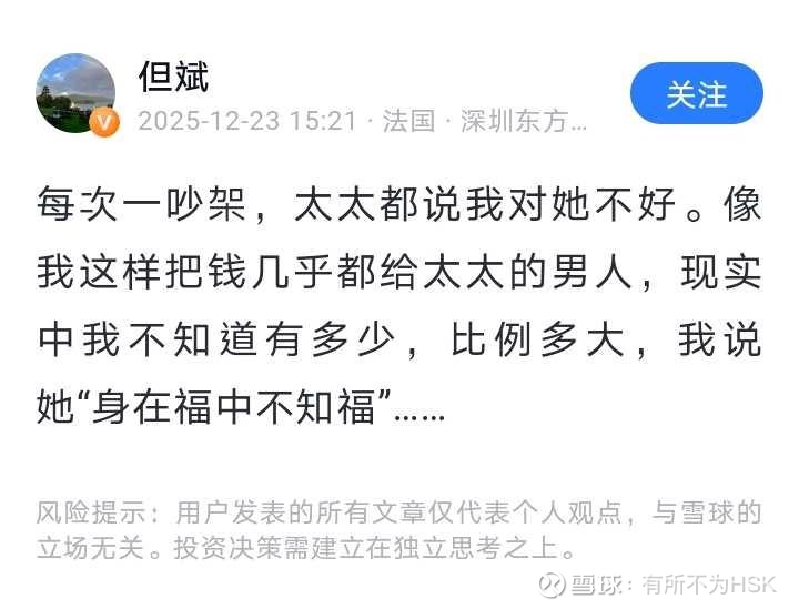 我老婆在很多领域是一个很优秀的人,也是一个温柔善良的人,她说那些话肯定没有恶意。其实相对来说,她算是全世界最支持我做投资的人了。她的那些反应,是普通人都会有的,是正常的人性使然。