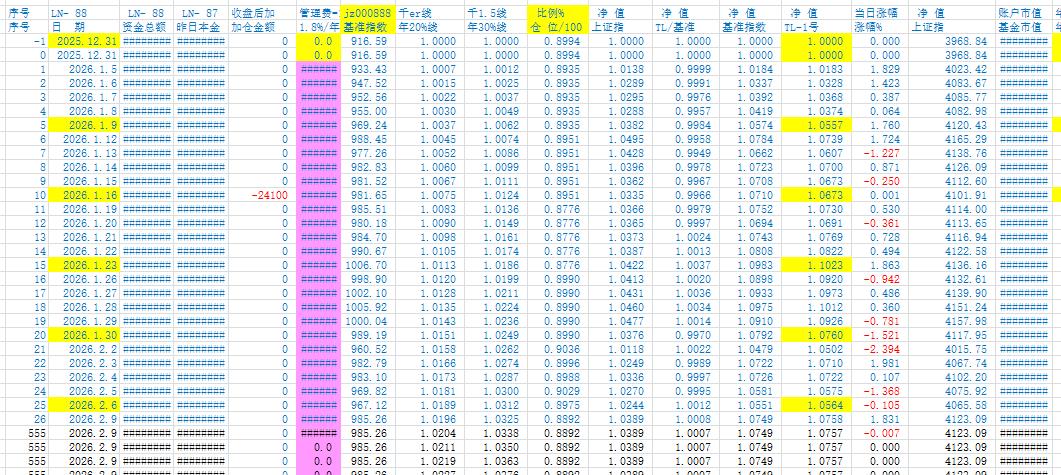 大资金进出要重新算净值,我是把股票、各类基金、存款都算成投资资产来计算净值,这样除了日常开支每季度提取一次,没有其他变动。每次变动小,差一点也就无所谓了。