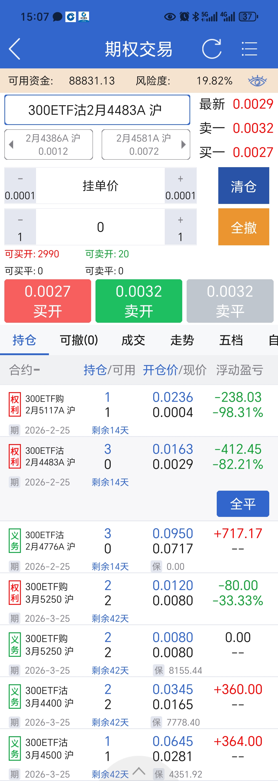 今日操作,平仓认购熊差