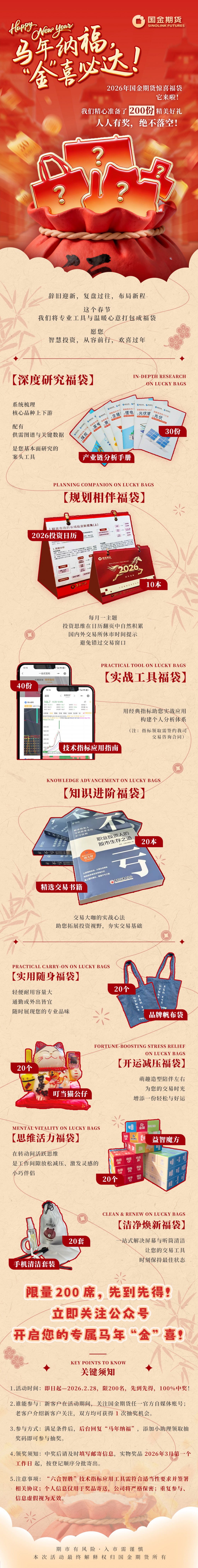 这个春节,我们不想只送上遥远的祝福。国金期货愿化作一份更具体的陪伴,将专业的“工具”与温暖的“心意”打包成福袋,融入您的生活与思考。愿它们能助您厘清迷雾,也能在专注的间隙,给您一份触手可及的小确幸。