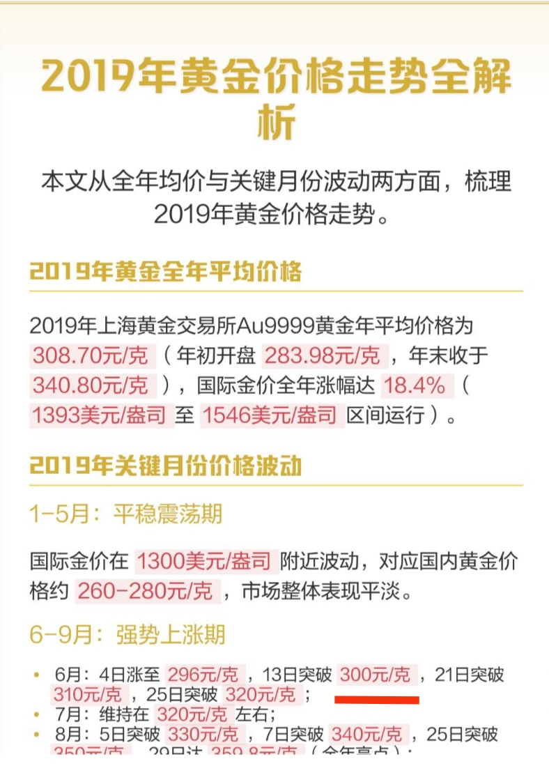 我在网上查看了一下2019年6月的黄金价格,您上篇贴文应该是错的。