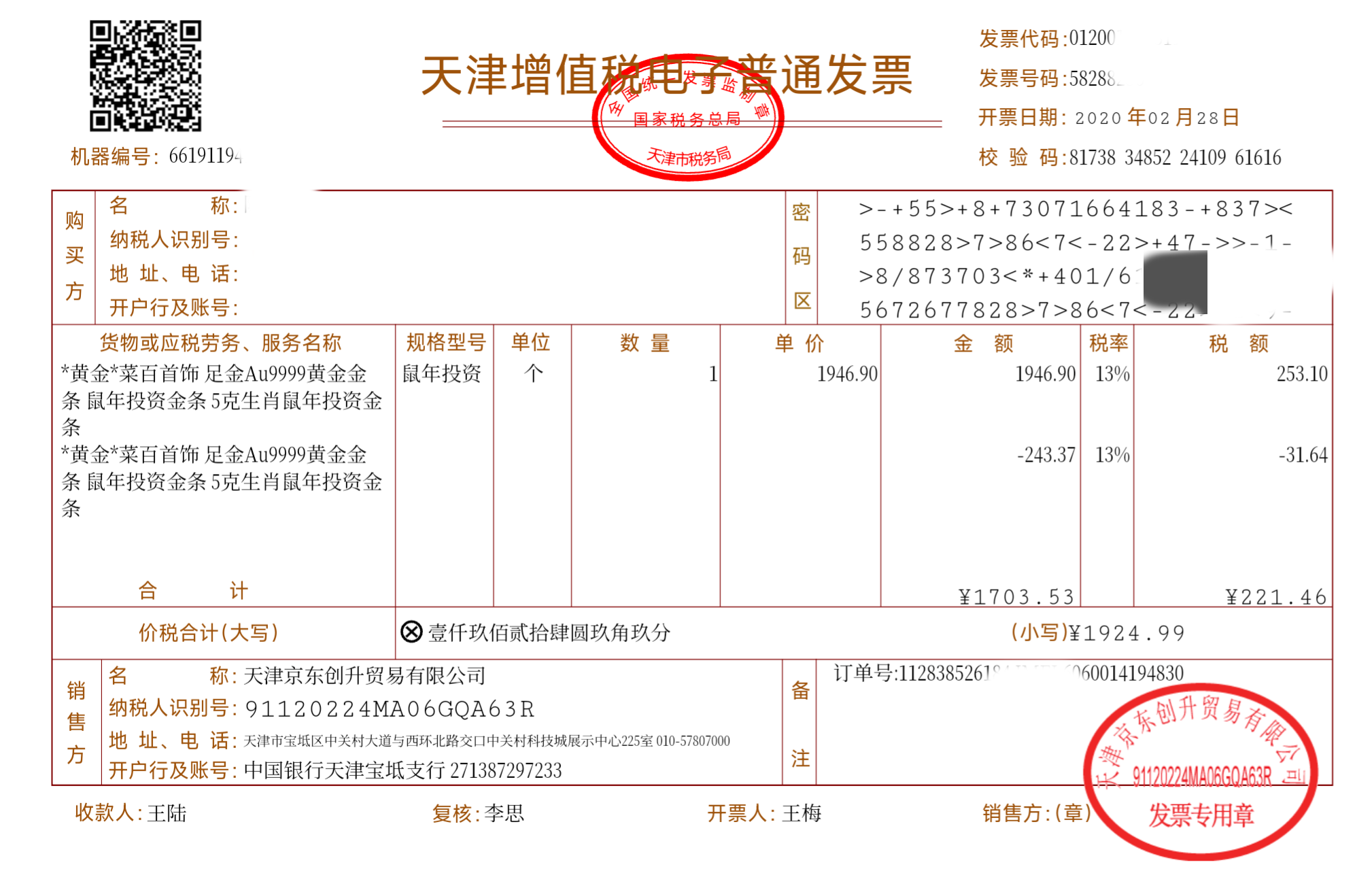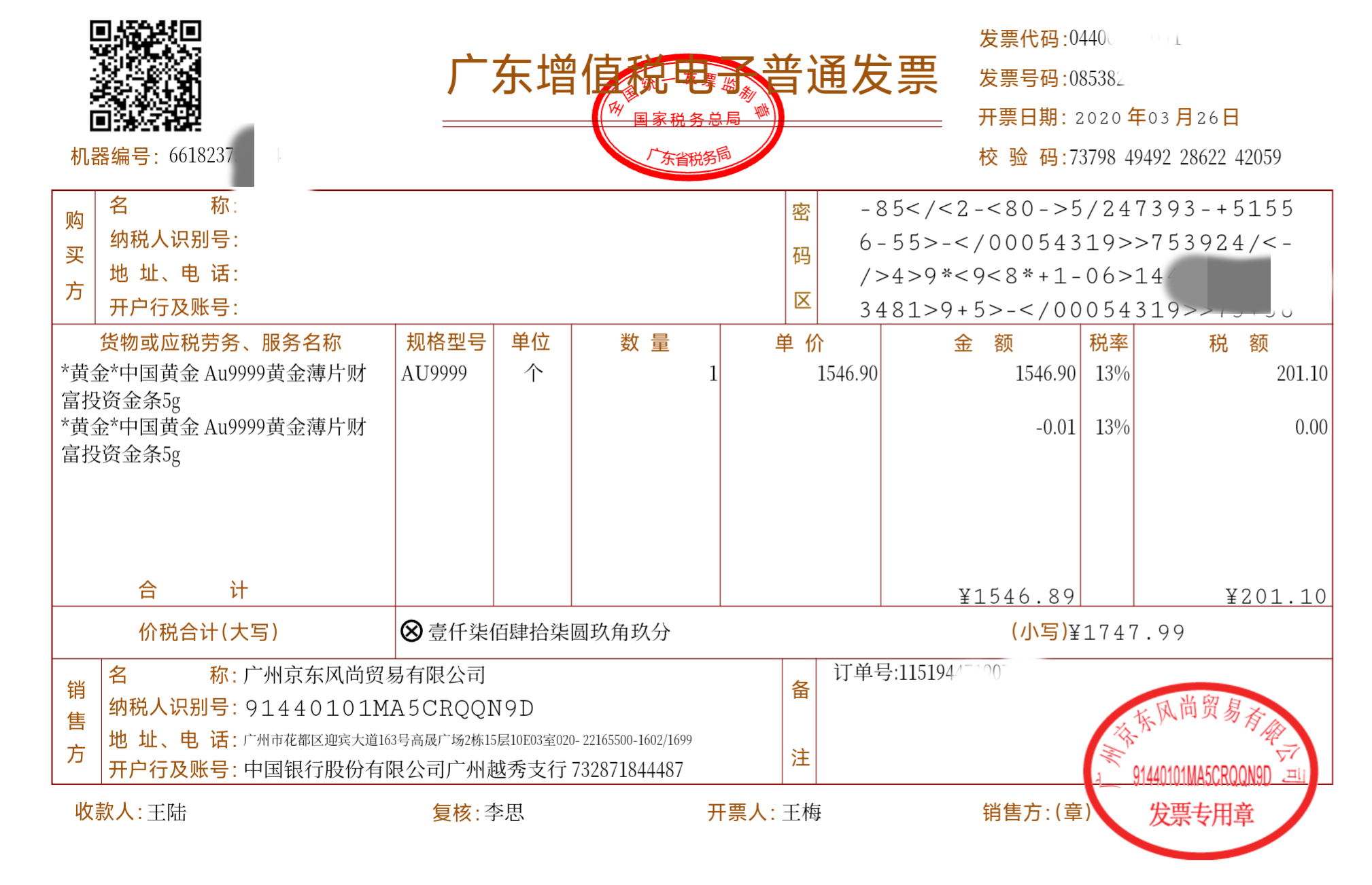 以前能干是因为一波动小,二这些实物金本来就带着13%的增值税,没人会因为套利买这些。等一下我去查一下发票。记得确实有13%的税,确实无法套利。