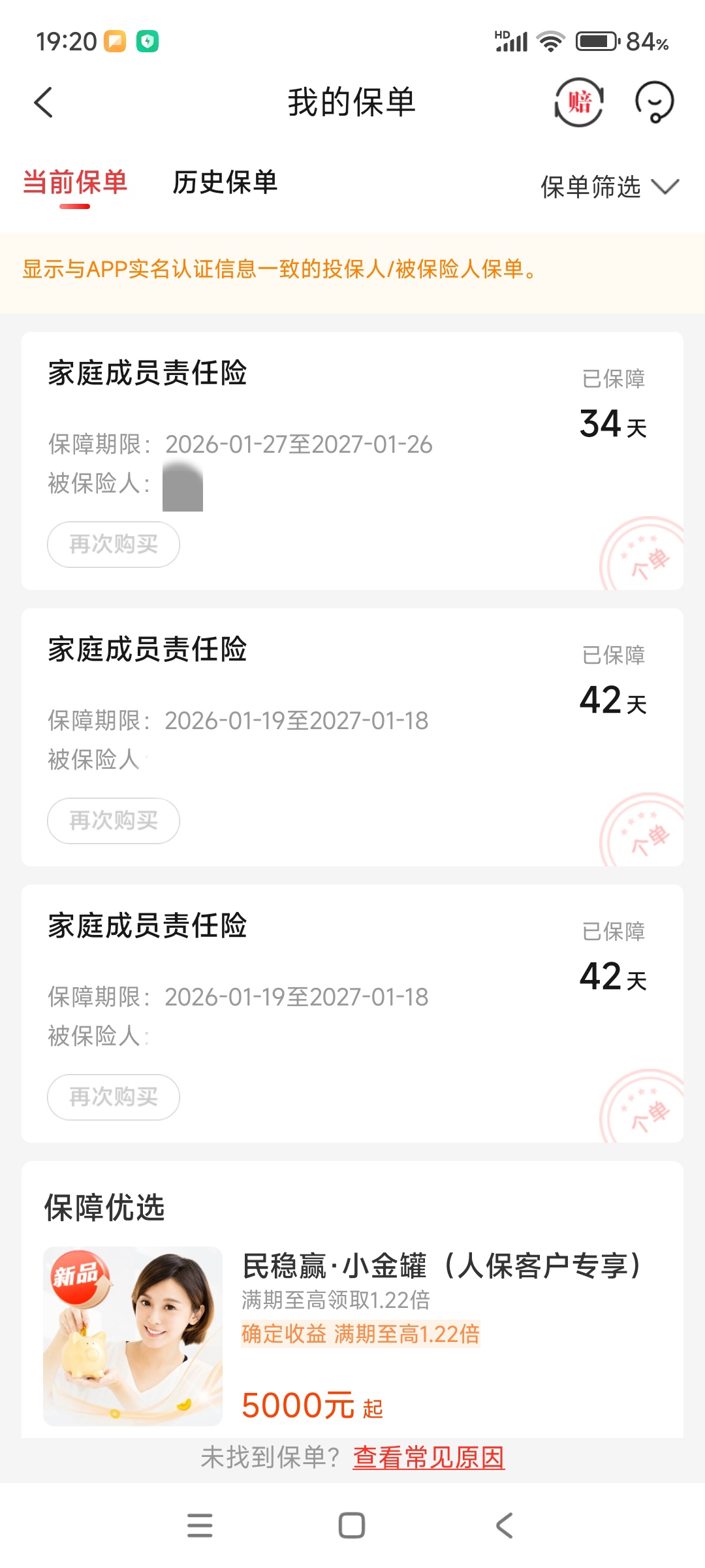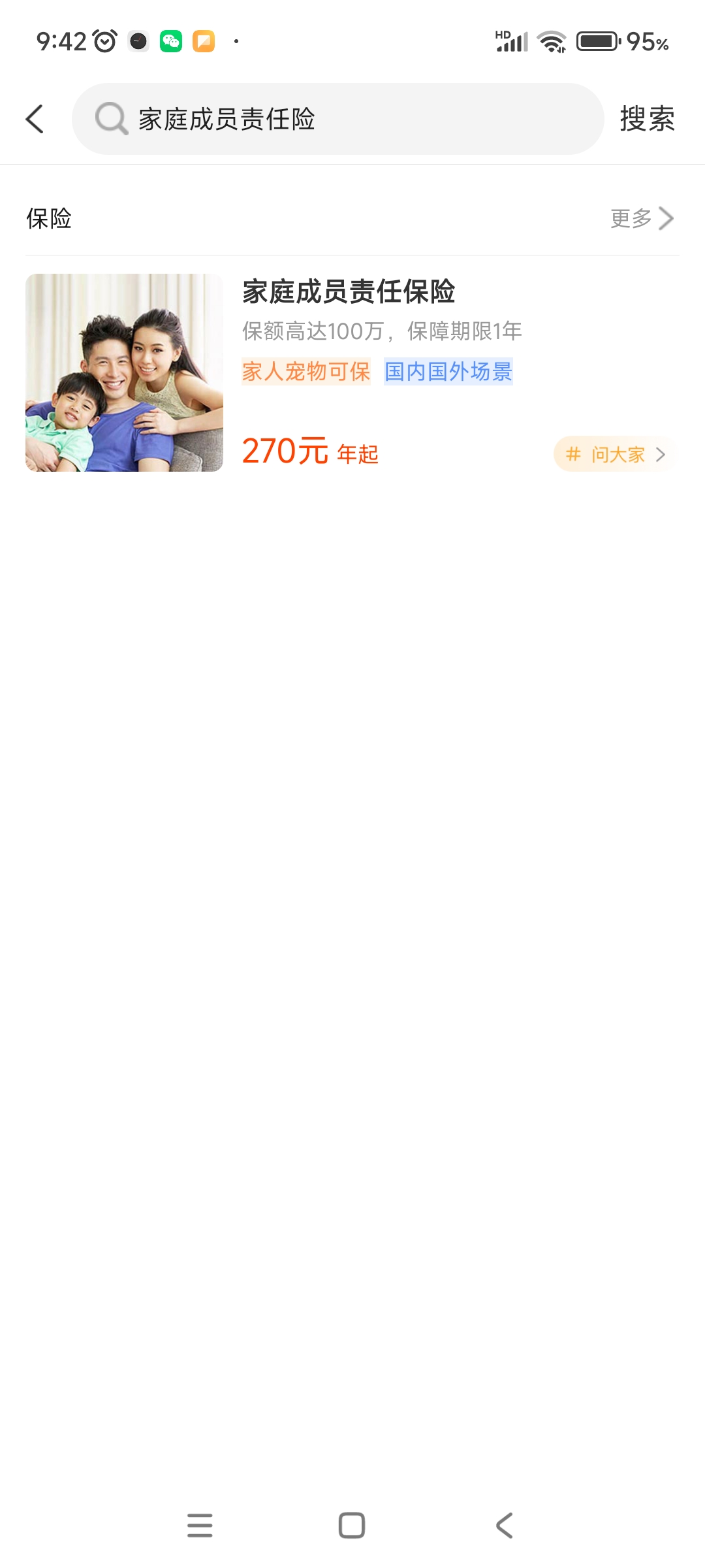 我就给家里人买了家庭成员责任险,今年买了三份,每人一份(下面有图片,这是自己家庭成员的,不是别人的图片)