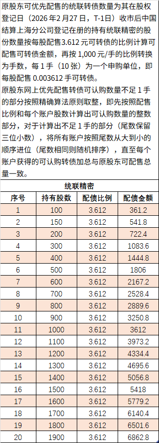 统联精密:向不特定对象发行可转换公司债券发行公告