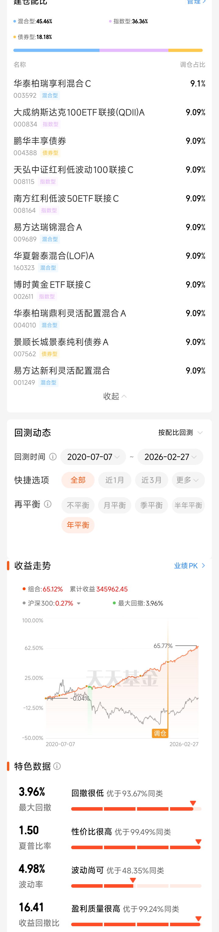 14-25这个时间段,组合里的标普500、黄金、中国长债都是上行周期,剩下的两个标的红利质量和自由现金流存在过拟合的问题(新指数),所以总体年化数据非常好看。