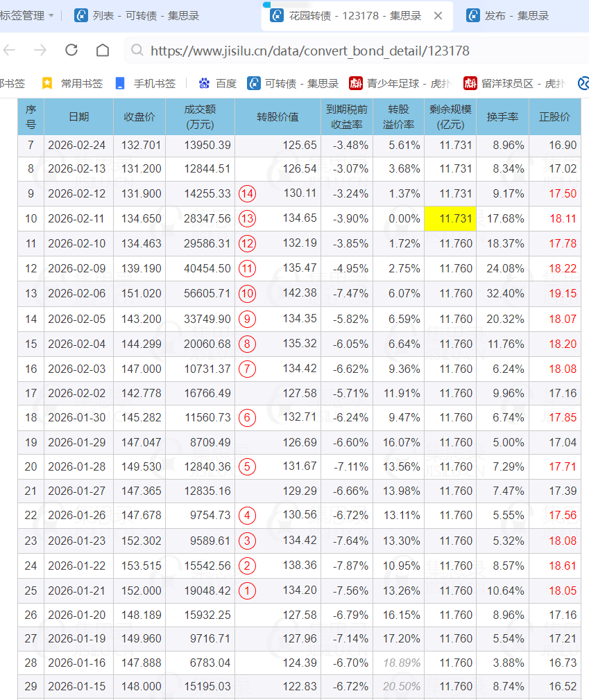 也就是到3月11日收盘不满足强赎回,花园转债的强赎回计数将减少4个交易日到剩10个交易日。