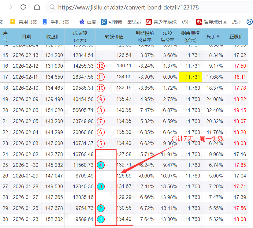 也就是说,在接下来的7天中,只要有1天不满足强赎价格,那么接下来的15天都没有满足强赎的机会了。