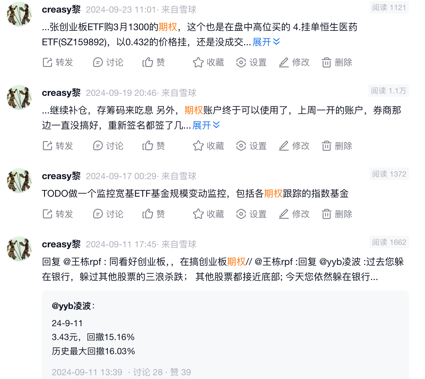 关于长期死拿期权可以赚钱。这不是什么理论计算,我就是这么做的,钱也是这么赚的,而且也赚了不少钱。记得2024年,4、5、6、7月份的时候,由于估值比较低,所以,不停地加仓期权。结果呢,你知道的,一买就跌,到8月底,9月初,跌得惨不忍睹。然后呢,9月24日,行情来了。那期权涨得让人头晕脑胀的,10月8日达到最高点时,依旧是坚决不卖,从9月24到10月8日,一直死拿。因为我的卖出规则是,在高估后,从...按照我的粗浅理解,从牛熊大波段维度,期权毕竟有时间损耗(如果时间价值为负另说哈),更大的优势在牛市顶部的做空,而且品种多,当然难度会很大;熊市底部的做多,用IC可能更好,还有年化6%+贴水可以吃,只要确保保证金足够即可,想听听老大看法。