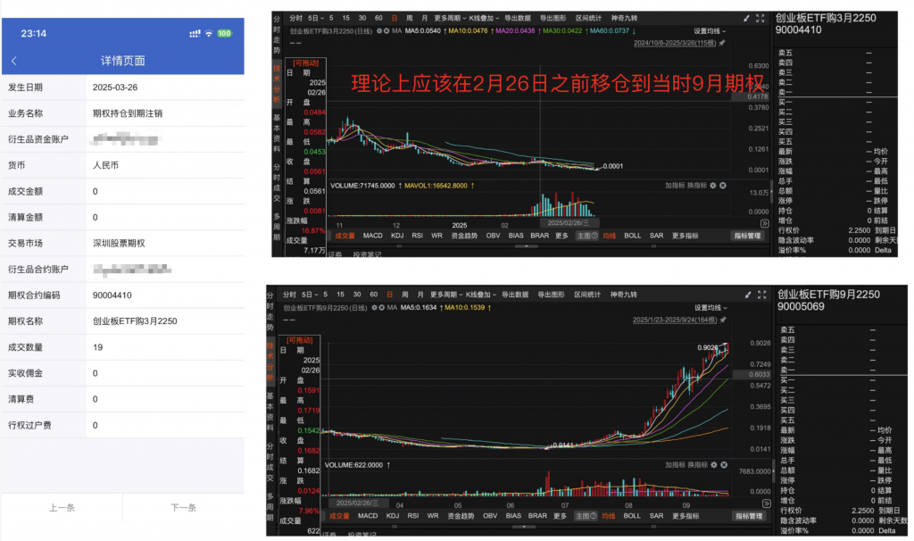这一瞄,就发现异常了,两个期权栏那写着“期权放弃”,明明对方有利卖C竞没人行权,再看了一下,那个生猪多单也还在那里,当时就蒙了。这么稳定的策略也出幺蛾子了,三条腿两条异常了啊。这跟剧本不一样啊,演员都不按剧本演了。