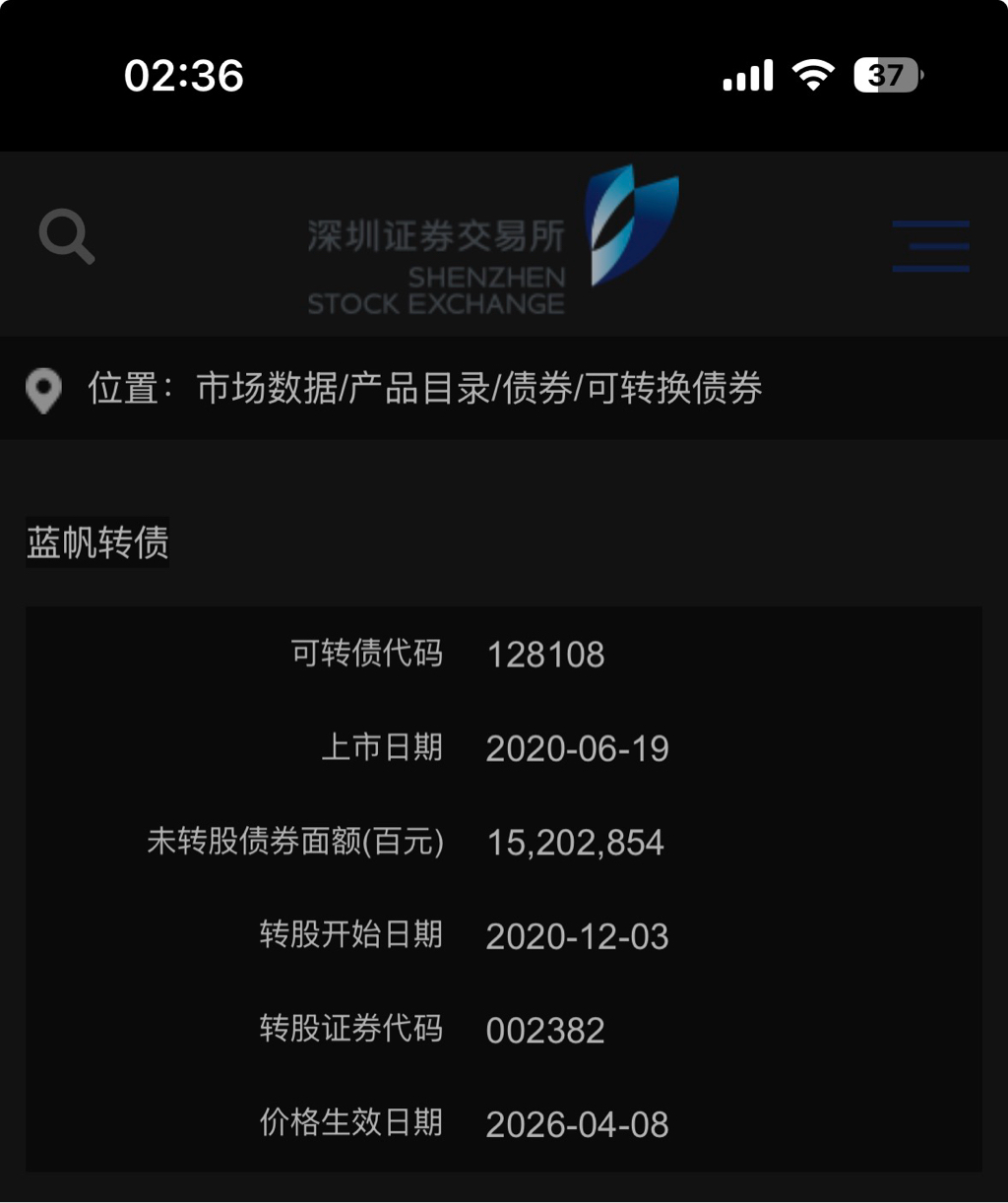 蓝帆有没有可能在学山鹰,大股东及关联机构暗暗收购转债按7.95自买自转,根本不用拉股价,哪怕正股一直保持7.95以下的价格,负溢价亏损转股,到期前基本完成转债转股。山鹰转债,鹰19转债都是这么玩的,看似不合基本逻辑,但人家大股东就这么玩,自买自转,把市场上的山鹰两只转债几乎都收购来然后负溢价亏损转股,期间正股价格根本没涨到1.76转股价之上,到兑付日前转股已经基本完成了。鹰19转债到期后今年正股价马上暴跌到1.3元左右。