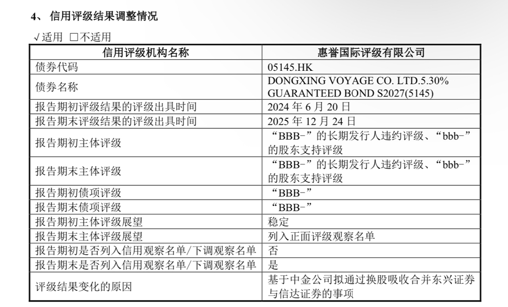 东兴年报3、40、62、63、64、76、80、98、130页提及了“吸收合并”。东兴是三傻中唯一在“重要提示”中提及本次交易的。此外,东兴董事会各专门委员会审议本次交易相关议案是在2025.12.16,比另外二傻早一天,不知道为什么。最后,有趣的是东兴的债券因为吸收合并事宜被惠誉国际纳入正面评级观察名单。
