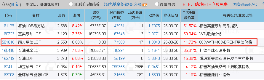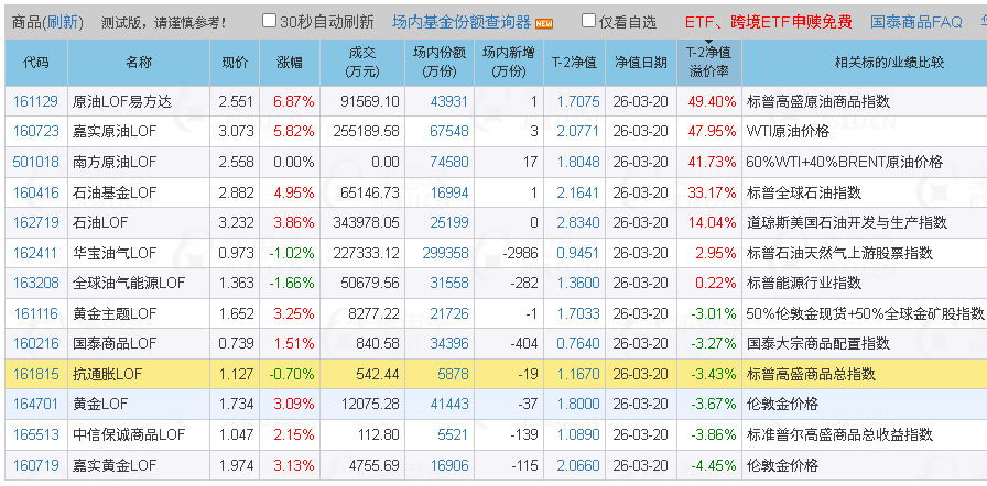2026/3/25晚 都说运气是实力的一部分,但在高溢价基金中,卖在高点只有运气好,没有一点实力。15点收盘时,几只高溢价的原油基金统统跌停,包括501018,各位达人,小赌怡情哈。