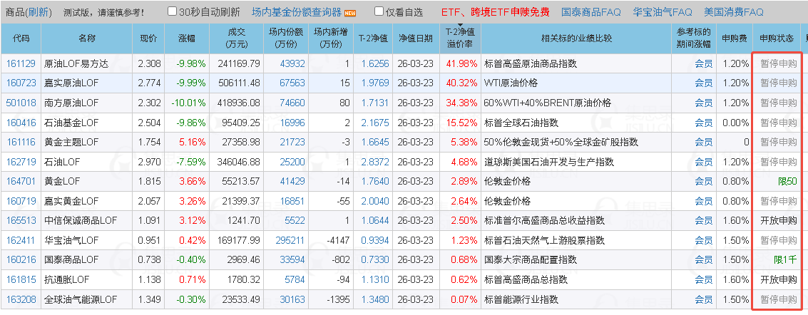 2026/3/24 13:00原油LOF易方达、嘉实原油LOF下午开市起至收市实施临时停牌,警示溢价风险,复牌后若溢价未回落,将采取进一步措施。交易所掀了张桌子,不能玩T+0了。