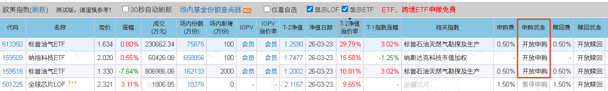 通常来讲,LOF基金可以一级申购,二级卖出,是消除高溢价最有效方法,可是,162411在3月6日,163208在3月5日均已暂停一级申购了。那么接下来基金的高溢价就无法消除了,在前几只与石油期货挂钩的高溢价基金被监管按住的前提下。那么低溢价的油气基金就有一定的投机机会。现在监管确实趋严,最新的情况是盘中溢价30%就关小黑屋。但还是有较大空间的。值得一搏。战争在继续,懂王主动求谈判,就是他无法搞定...我跟你想法一致,并且163208因为经常出现折价,不断有人买入后赎回,场内份额越来越少了。前面份额4亿多,今天份额已经3.02亿了。盘子越来越小,资金控盘炒作也越来越容易,所以昨天我又加了很多,但事实就是表现还不如大体量的华宝。